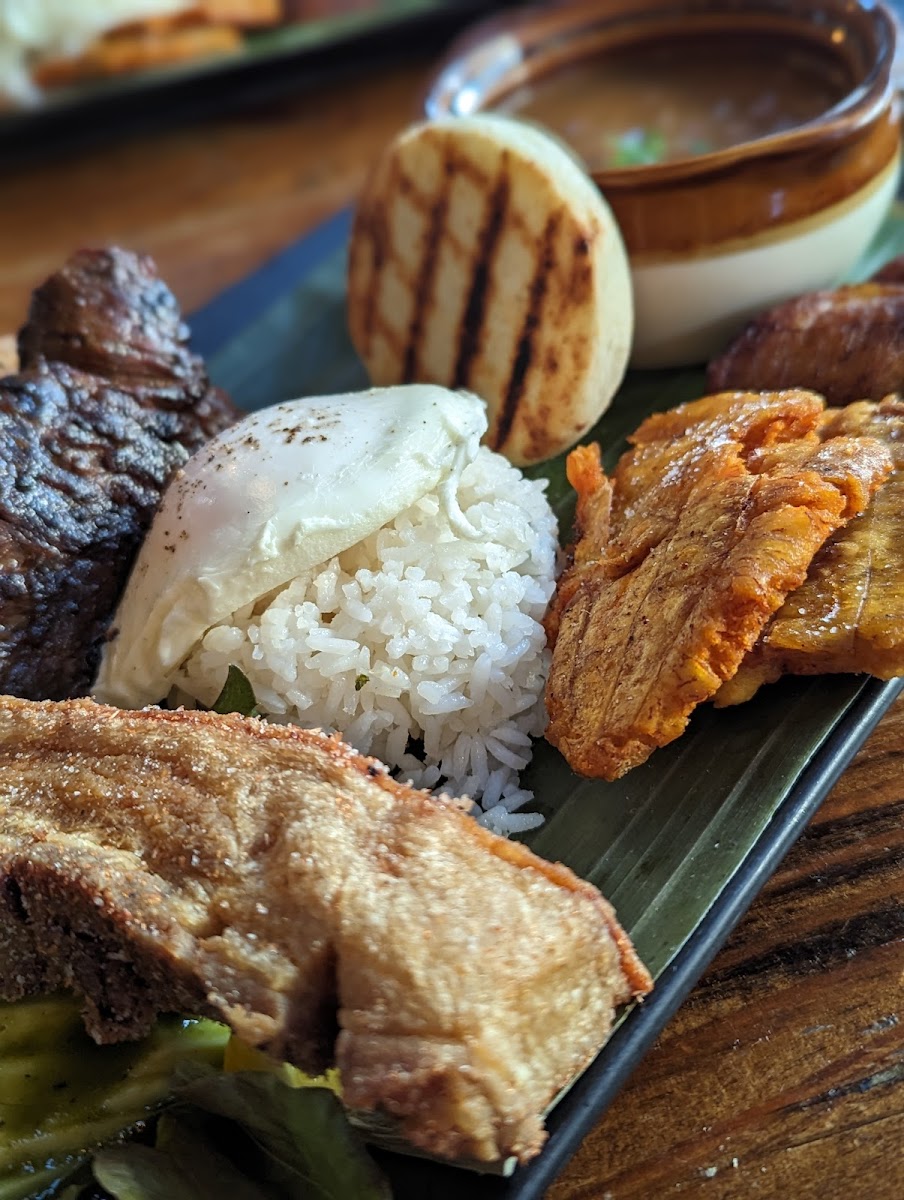Incredible food. Strongly recommend the Chuzos de Panza (slow cooked pork belly), easily the best item of our entire meal. Between the two Arepas we got, I prefered the Cerda. For entrees, The skirt steak in the Bandeja Paisa was a little overcooked imo, but everything on the plate was really good. For desert, the tres leches was a but too course, the flan was much better between the two. Overall the value of the food and its presentation were both top notch, a very surprising find in a pretty unassuming location. Definitely recommended.